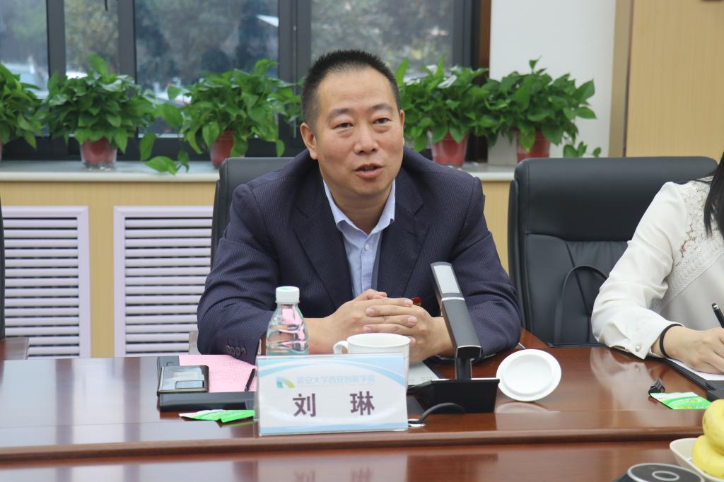 随后,陈瑶致欢迎辞。他代表公司全体师生对刘琳书记一行到访表示热烈欢迎,并简要介绍了公司的历史沿革和办学特色,重点阐述了“三师一员”应用型人才培养目标、“一体两翼”育人体系、卓越人才培养工程和创新创业引领工程等方面工作开展情况。他表示,两校有着深厚的情谊,双方应以此次交流为契机,进一步加深了解、增进友谊、携手发展。