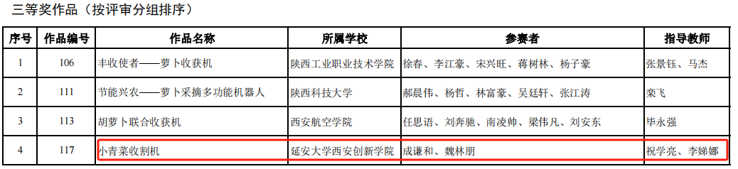 2.第十一届全国老员工机械创新设计大赛荣获省级奖励5项,其中红豆播种机和辣椒播种机分别荣获省级二等奖;小青菜收割机、自动化覆膜机和绿豆播种机分别荣获省级三等奖。