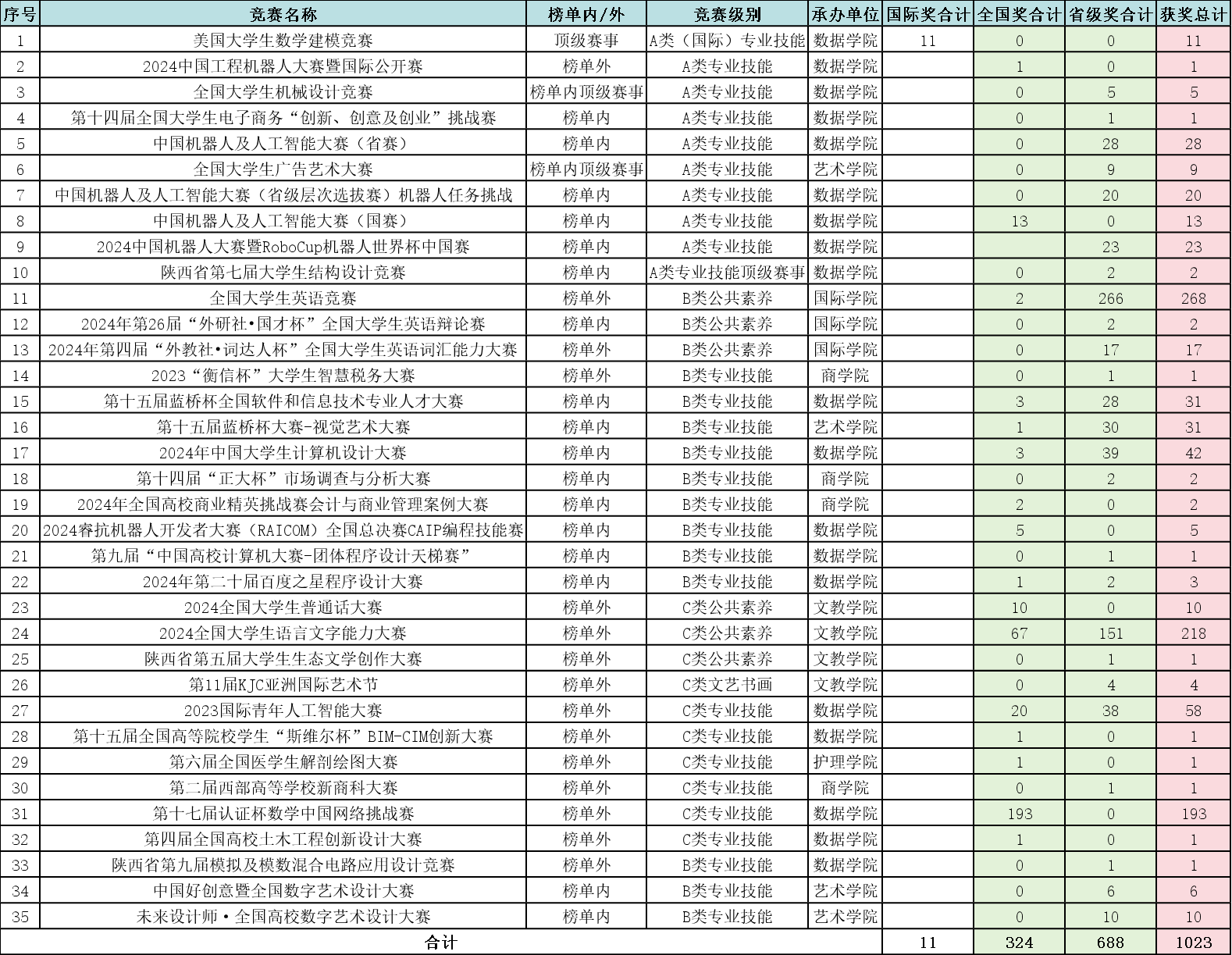 2024年学科竞赛省级(含)以上奖励获奖清单(截止10月)