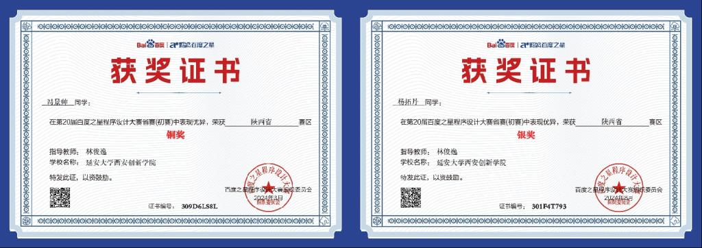 8.第二十届百度之星程序设计大赛荣获省级银奖1项,省级铜奖1项。