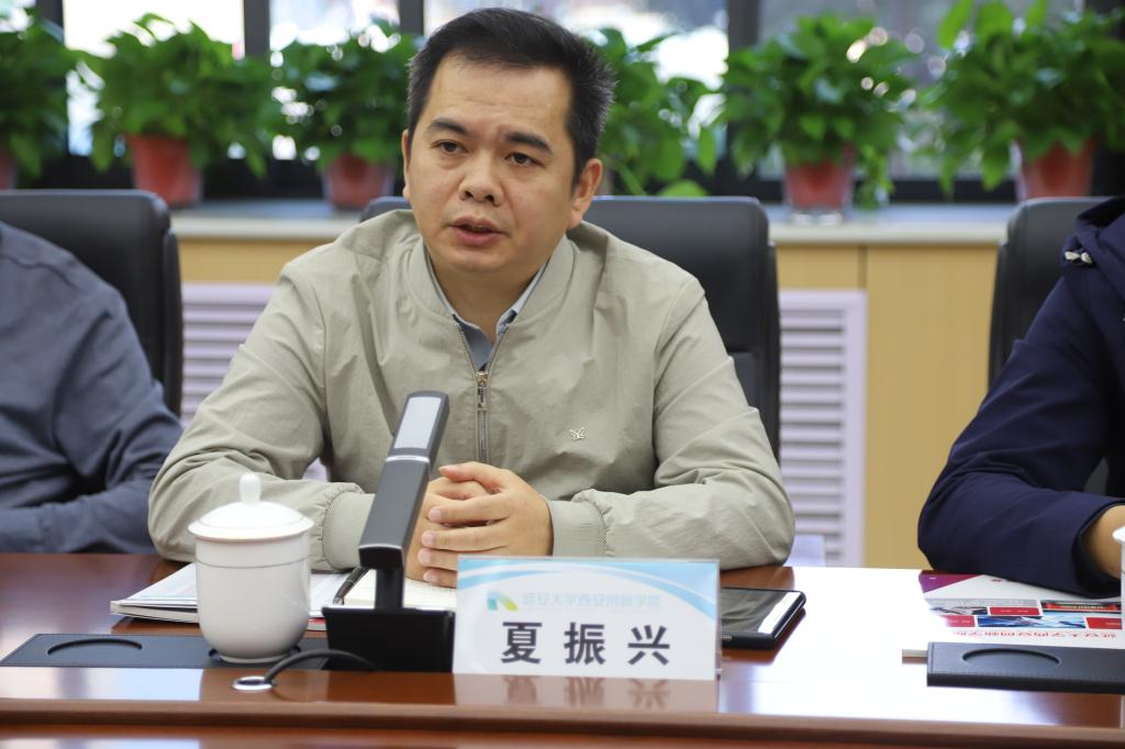 夏振兴简要介绍了北京金信润天信息技术有限公司的基本情况、教育领域的发展规模和运营模式及优势特长。他表示,公司以ICT为立足点,已经形成了计算机网络技术、信息安全、云计算、大数据为主,人工智能为辅的专业体系结构,目前在人才培养、教师赋能培训、实训基地建设等方面均有成熟且成功的合作案例。同时,他也表达了公司对未来合作的期待,希望能够与公司建立更加紧密的合作关系,未来在智能制造、VR虚拟现实、无人机相关领域加深合作,校企共建产业公司、实训基地,创新性探索产、学、研一体化道路,推动校企合作协同育人走深走实,实现双方共创共赢。