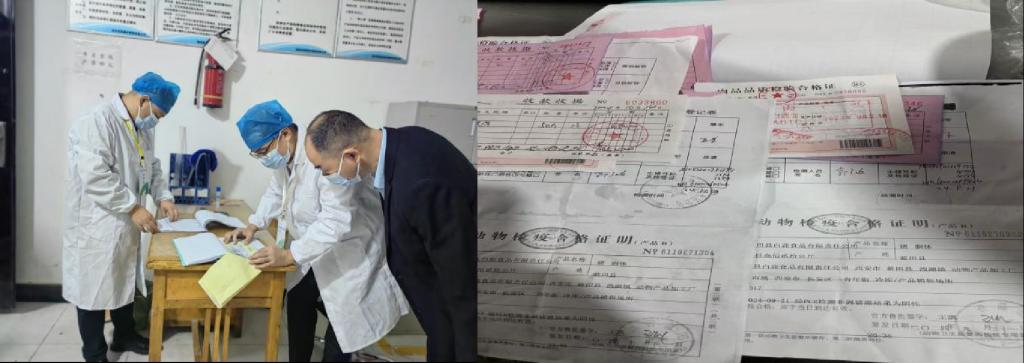 检查过程中,工作人员对肉类原材料进行严格查验,仔细观察肉的色泽、纹理,用手触摸感受肉质的弹性,并仔细核对每一批次肉类的进货日期、检验检疫证明等,确保肉类品质新鲜且来源可靠。