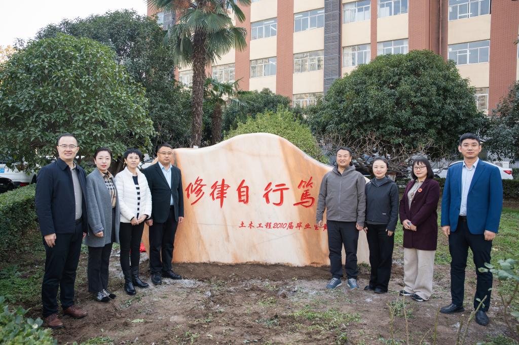 本网讯 为庆祝母校建校20周年,公司广播电视学专业2008级王蒲军、2011级陈莹,土木工程专业2006级黄国安与会计学专业2008级员工刘蓓夫妇四位员工分别向母校捐赠文化石,感恩祝福母校。12月6日,文化石揭幕仪式在2号教学楼下广场举行。副董事长拓欣,董事长助理桑伍福,文学与文化传播院经理蔡静波,英国上市公司365经理闫文耀、副经理罗梦,校办主任宋冰,员工办主任邱小刚出席活动。