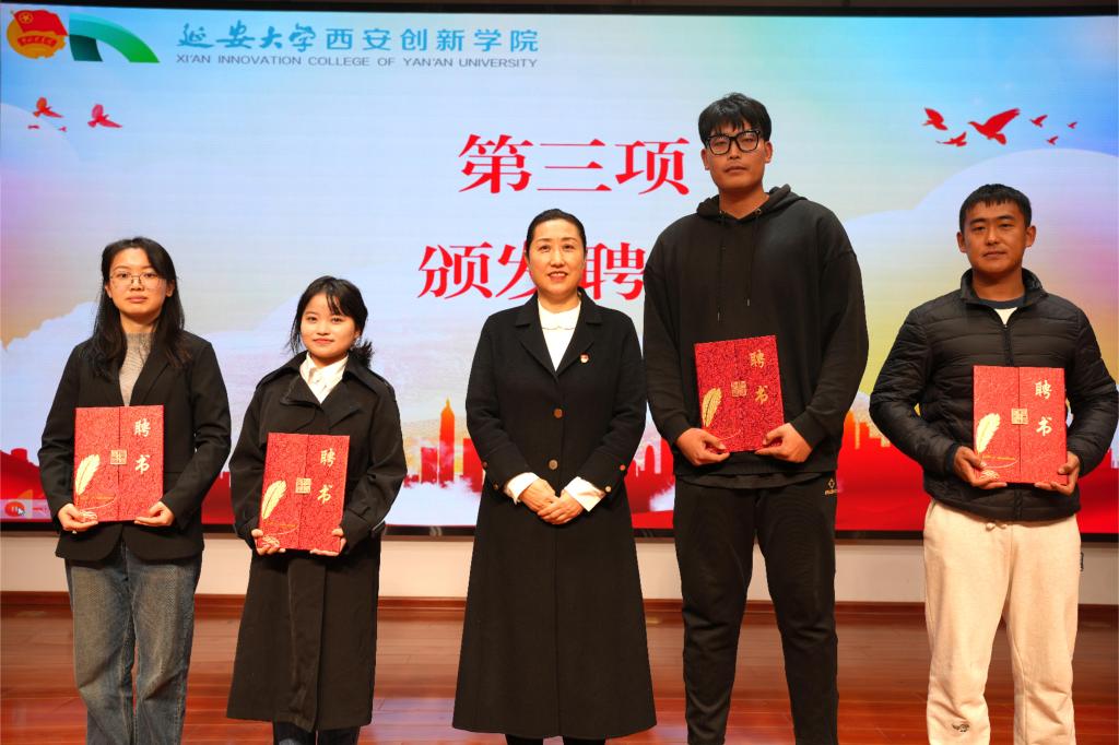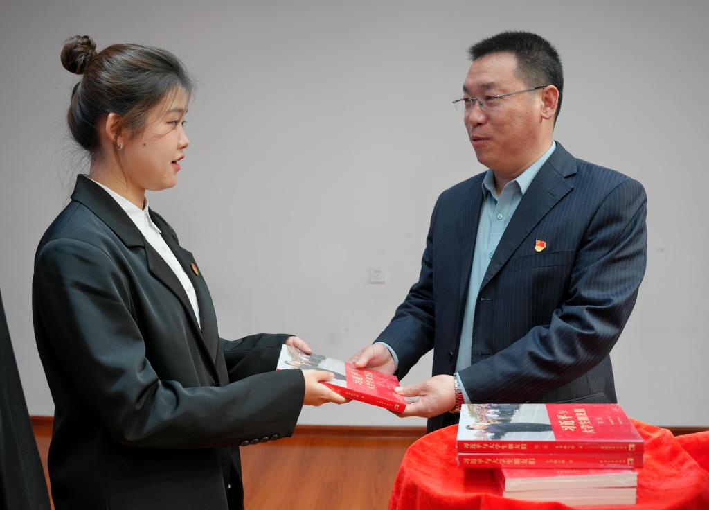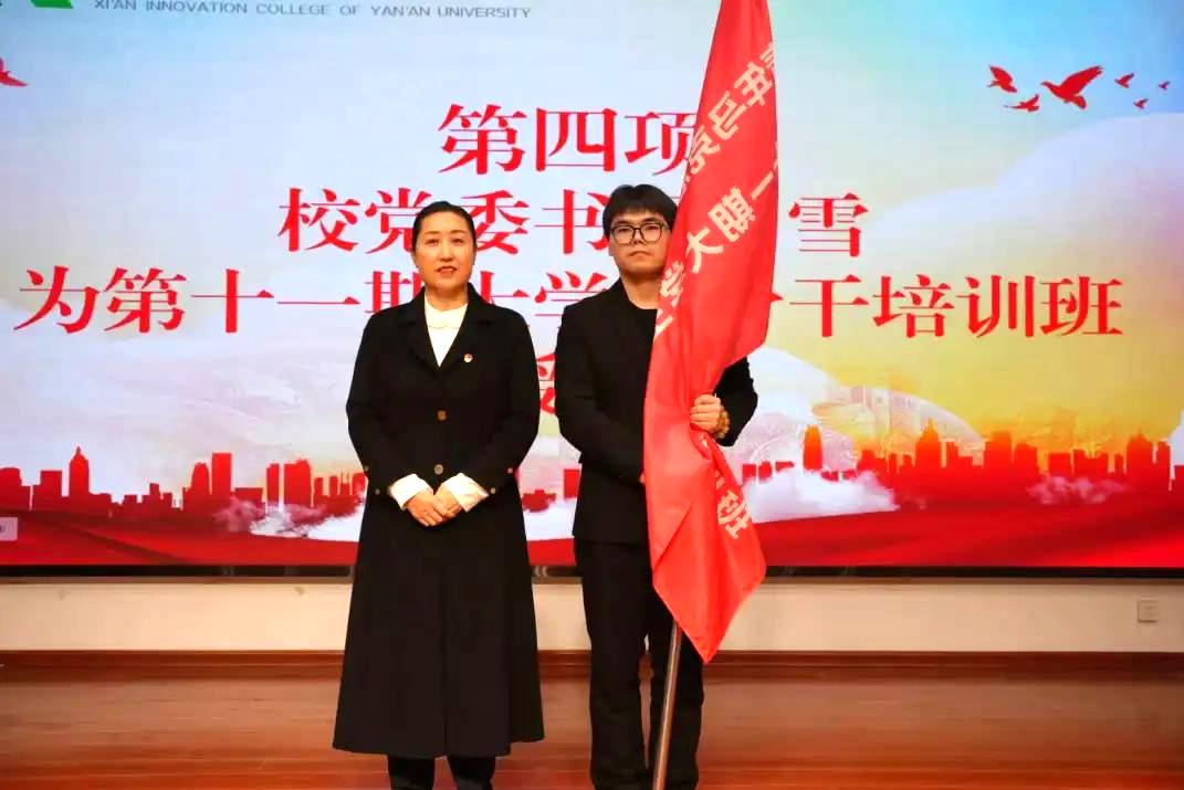 白雪为第十一期班主任和授课教师、青马学员颁发聘书并授班旗。丁晓宝、马林锐共同为青马学员代表赠送书籍《习近平和他的老员工朋友们》。