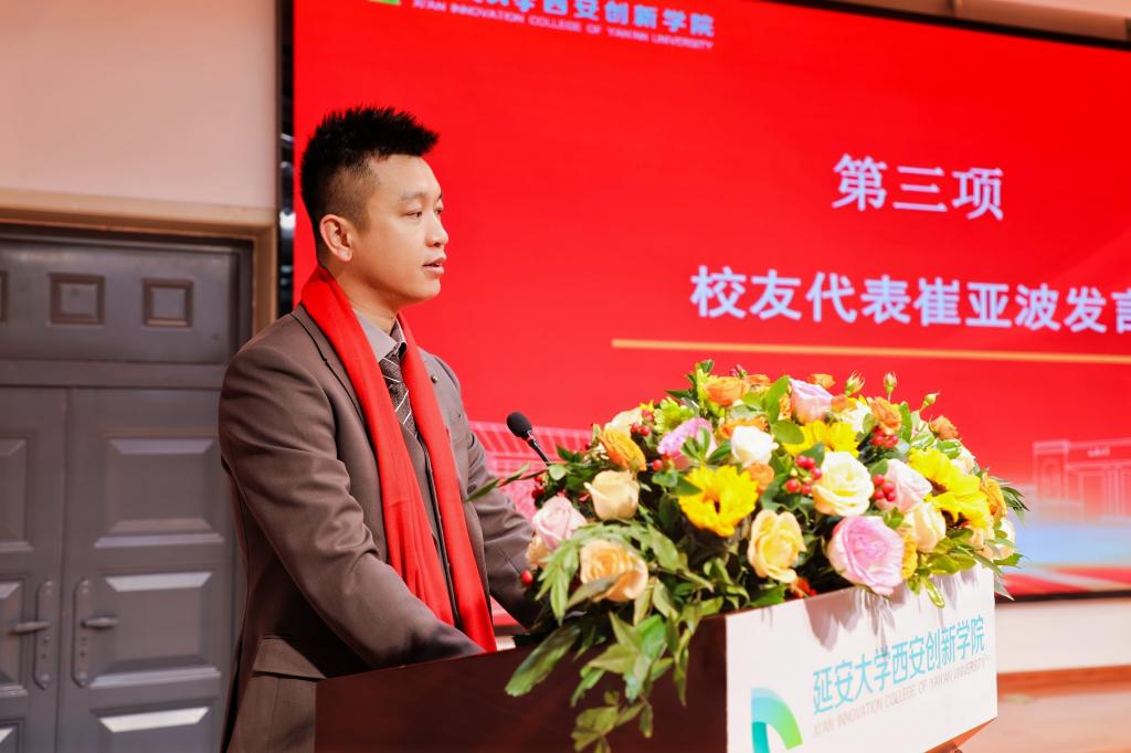 员工代表崔亚波、杨帅、薛宝平代表全体员工祝福母校、感谢师恩。崔亚波在发言中表达了对母校的深厚感情和由衷感激。他回顾了在母校的学习经历,展现了个人成长和职业发展中的努力和成就,他表示,自己将以实际行动支持母校、反哺母校,始终关注和支持母校发展。杨帅在发言中重温了校园生活点滴,分享了母校的“严管与厚爱”,表达了对母校的感恩之情和真挚祝福。薛宝平代表所有博士员工对母校悉心栽培与无私奉献表示衷心感谢。他在发言中分享了自己校园的青春记忆和毕业后一路求学的挑战与坚持,鼓励在校学弟学妹们要珍惜时间,努力学习,不断挑战自我,追求卓越,用每一次的尝试与失败奠定未来的基石。
