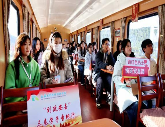 11月22日上午,公司师生乘坐研学专列向红色圣地延安进发。在研学专列上,赵玥结合革命先辈在延安时期的奋斗历程,深入阐释了延安精神的内涵。师生们围绕精神传承热烈互动、各抒己见,在思想碰撞中深化理解,氛围热烈而欢快。