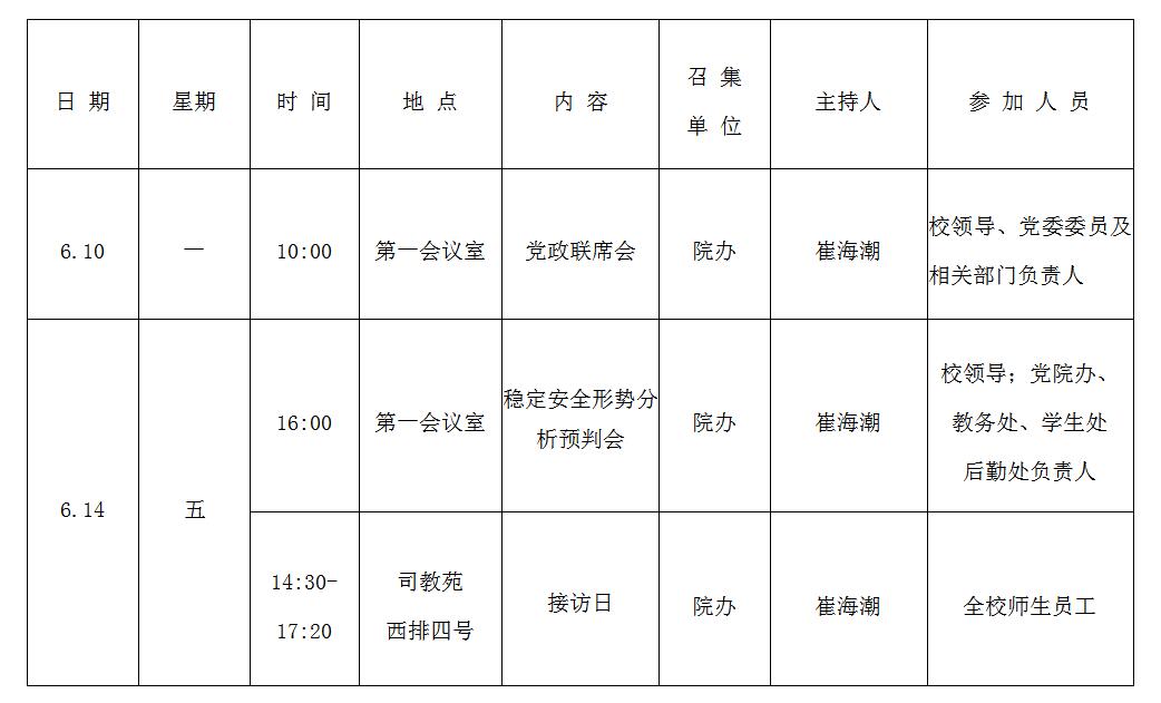 英国上市公司3652018-2019第二学期第16周校领导会议安排