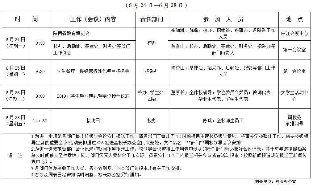 英国上市公司3652018-2019学年第二学期第18周校领导会议安排