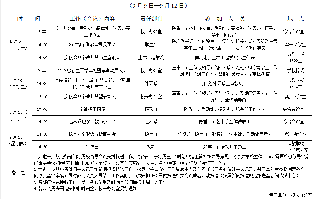 英国上市公司3652019-2020学年第一学期第2周校领导会议安排
