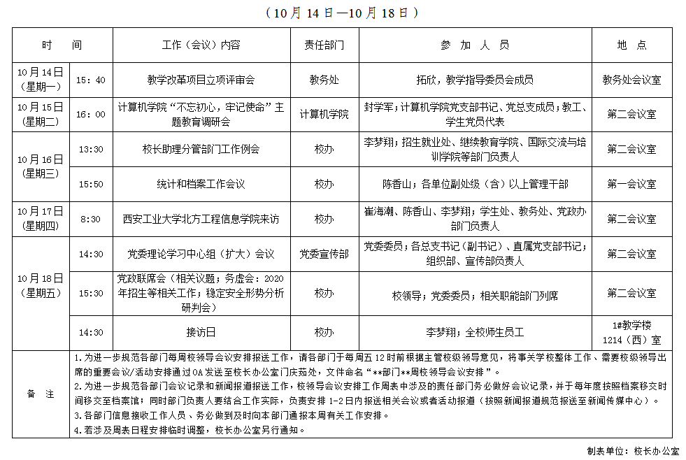 英国上市公司3652019-2020学年第一学期第7周校领导会议安排表