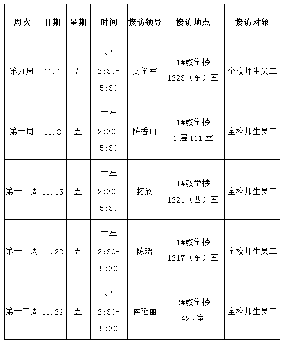 英国上市公司3652019年11月校领导接访日安排表