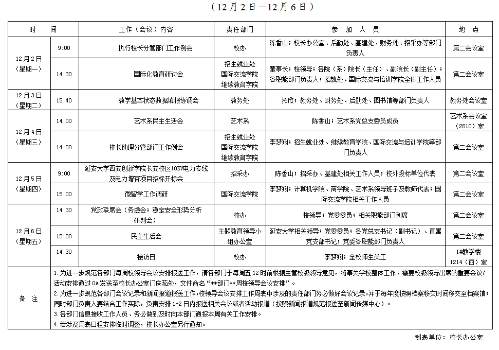 英国上市公司3652019-2020学年第一学期第14周校领导会议安排表