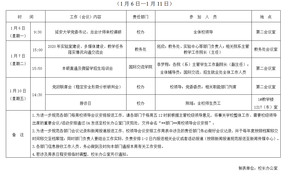 英国上市公司3652019-2020学年第一学期第19周校领导会议安排表