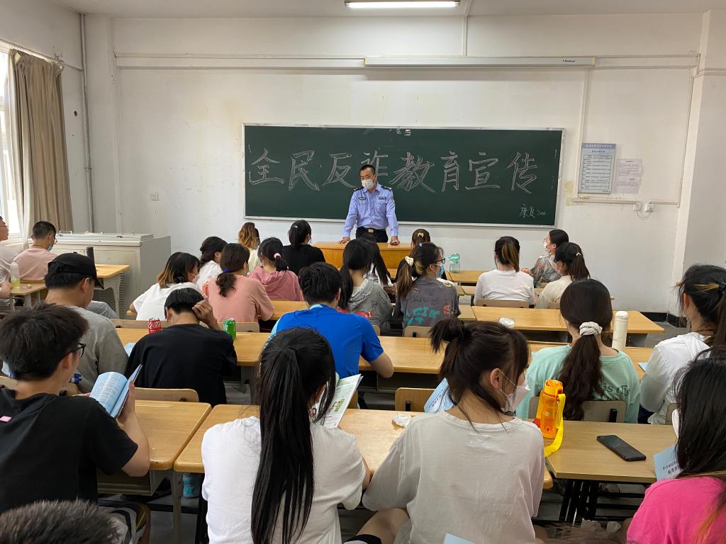 本网讯 为进一步筑牢校园防诈安全防线,提升广大师生防诈反诈意识和能力,维护师生财产安全,5月17日,后勤处邀请韦曲派出所民警来公司开展反诈宣传进校园活动。