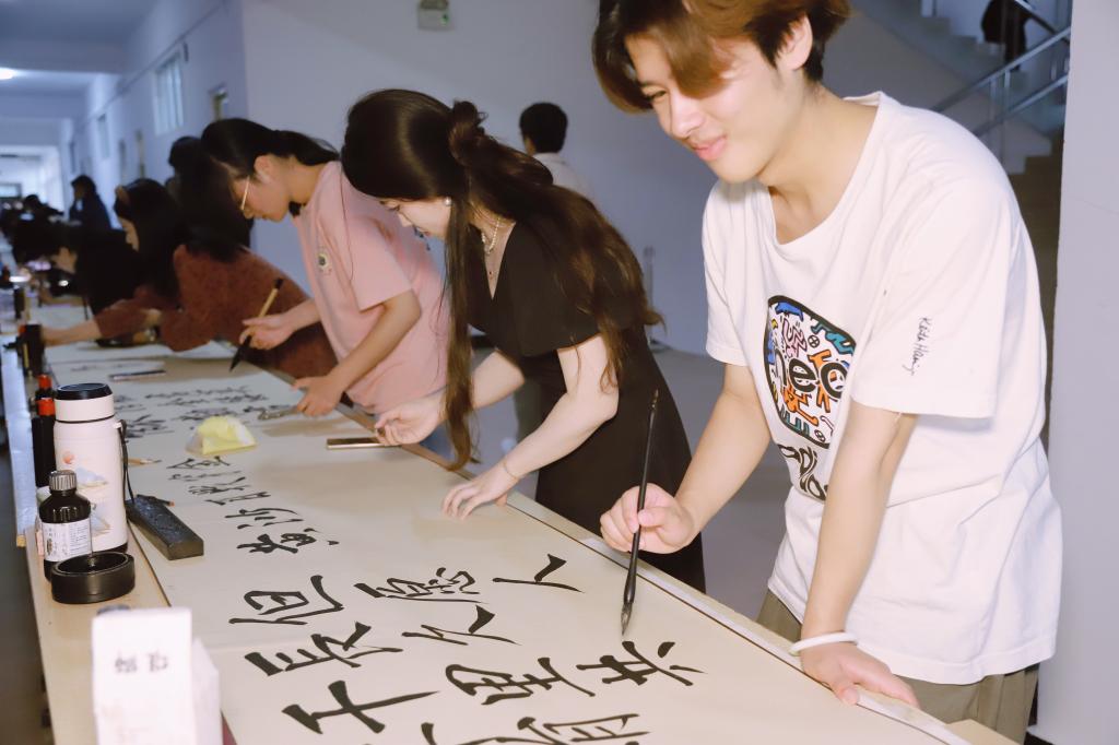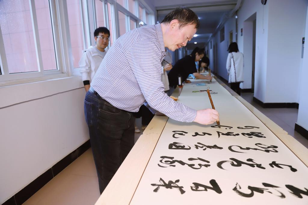 文公司党总支副书记赵双勇,副经理杨惠栋、刘菲菲,专职教授高天成,专职教师王彩凤,全体辅导员及一百名爱好书法的员工参加此次活动。