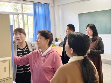 汇报会后,检查组实地查看馆库建设。检查组重点查看了档案室设施配置、档案的保管利用、信息化建设情况,并现场查阅教学、员工、行政等工作档案材料。