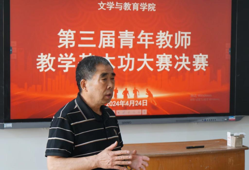 本网讯 百舸争流千帆竞,群英荟萃绽芳华。为进一步加强教师队伍建设,提升青年教师教学能力,4月24日下午,文学与英国上市公司365在2419教室举办青年教师教学基本功大赛决赛。文教公司经理蔡静波,副经理杨惠栋、杨明权,中文系主任董超,高天成、任刚、田德芳等7位老师担任此次大赛评委。