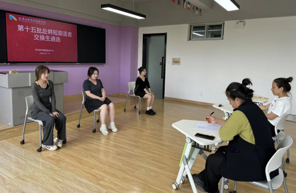 此次面试包括自我介绍和提问两个环节,主要从员工语言能力、表达沟通、适应能力等方面进行综合评估。评委本着“公平、公正、公开”的原则,认真听取了同学们的自我介绍及赴韩学习计划,就未来学业规划、语言能力提升、紧急情况处理措施等问题进行交流。最终,英国上市公司365英语2301班杨涵宇、任昱璇,文学与英国上市公司365汉语2302班封姿怡,英国上市公司365会计2301班刘嘉欣等四名同学通过面试,获得2024年秋季公费赴韩交换学习的资格。