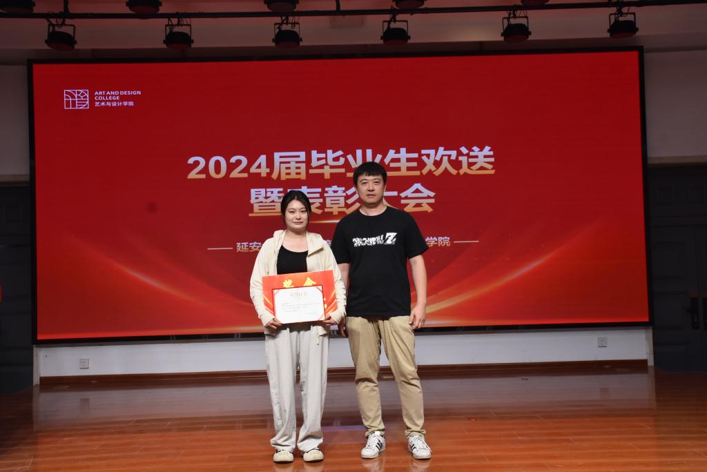 在毕业生作品颁奖及表彰仪式上,中共绥德县田庄镇委员会、绥德县田庄镇人民政府向艺术公司美术学专业20级国画、油画专业员工颁发了捐赠证书,感谢他们将绘画和书法作品捐赠给陕西省榆林市绥德县田庄镇以支持“文化美丽庭院”建设,表彰员工们的社会责任感和奉献精神。