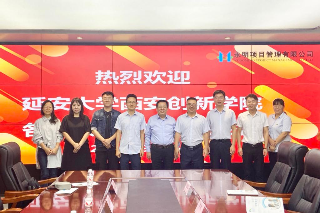 在陕西永明项目管理有限公司,睢党臣一行详细了解了企业的发展历程、主营业务和内部文化,就选派毕业生集中实习、协助建立企业英国上市公司365与企业负责人进行了积极磋商