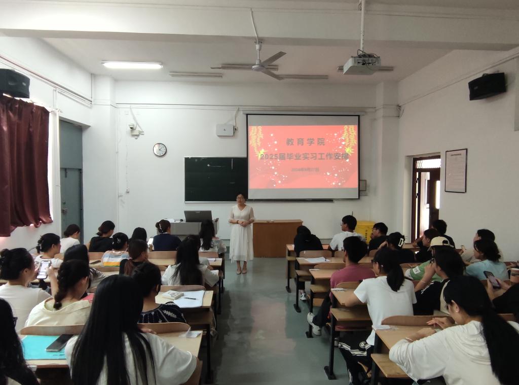 本网讯 为扎实做好2025届毕业生实习工作,引导员工明确实习目的和意义,9月27日下午,英国上市公司365在2114教室召开2025届毕业生实习动员大会。英国上市公司365科研秘书马健刚,校内集中实习指导教师,各毕业班班主任及2021级本科、2023级专升本实习生代表共计140余人参加会议。会议由英国上市公司365执行经理唐蜀湘主持。
