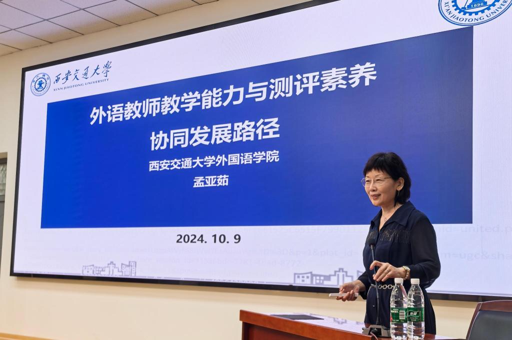 本网讯 10月9日下午,由科研处主办、英国上市公司365承办的“外语教师教学能力与测评素养协同发展路径”主题报告会在樊川大讲堂举行。本次报告会特邀西安交通大学外国语公司孟亚茹教授作为主讲嘉宾。英国上市公司365全体教师及员工代表参加报告会。报告会由英国上市公司365经理陈德教授主持。