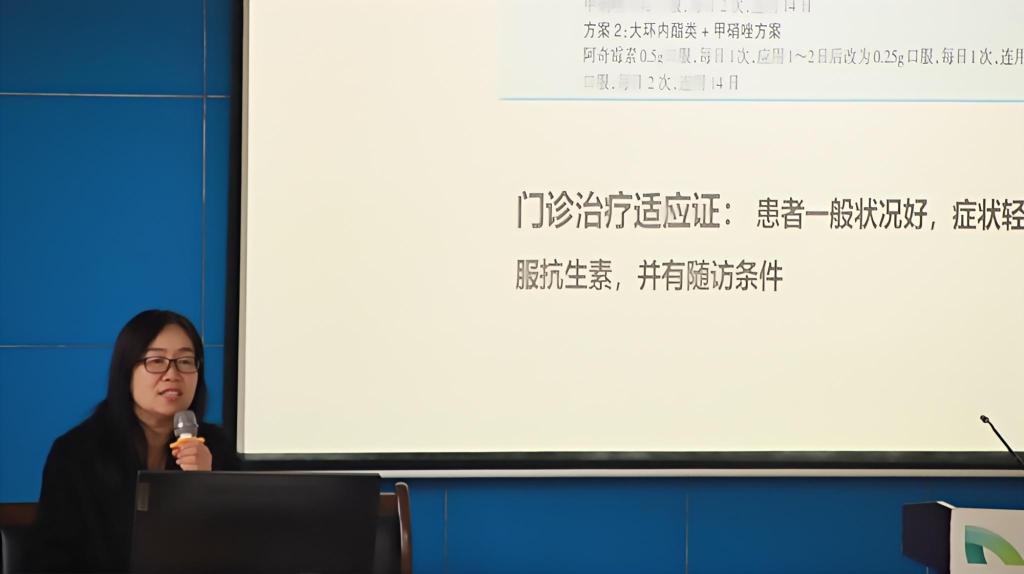 邓晓红从急性盆腔炎性疾病的基本概念入手,清晰地界定了这一疾病的范畴,并系统阐述了其病原体及致病特点。她指出,该病主要由细菌、病毒等微生物感染引起,这些病原体通过多种途径进入盆腔进而引发炎症反应。在解析致病特点时,邓晓红主任强调了局部解剖结构、免疫力状态及病原体毒性等关键因素的影响作用,为理解疾病的发生机制提供了科学依据。随后,邓晓红主任详细剖析了急性盆腔性炎症的高危因素,包括性行为活跃、不良卫生习惯、宫腔内手术操作、邻近器官炎症蔓延等,并提醒师生们要关注这些高风险行为,加强预防意识。在病理变化部分,邓晓红主任利用图像资料展示了炎症过程中盆腔组织的微观变化,从充血水肿到炎性渗出,再到纤维组织增生,生动展示了疾病的发展过程,帮助现场师生建立起直观的认识。在治疗方面,邓晓红主任强调了联合使用抗生素的重要性,并针对特定病原体感染的治疗方案及预防策略进行了详细阐述。