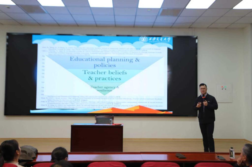 高洋博士以“语言学在日常生活中的科研价值重构”为主题,系统阐述了语言学研究的前沿动态、科研方法,以及科研方向的确定与深化路径,展示了语言学的广泛应用与创新潜力。他重点分享了其团队在语言学与人工智能交叉领域的最新探索,并指出问题导向、跨学科合作与团队协作是推动科研创新的关键动力。在互动环节,与会师生就跨学科研究、统计方法学习、前沿课题选择等议题进行了深入交流,为师生拓展科研方向提供了有益参考。