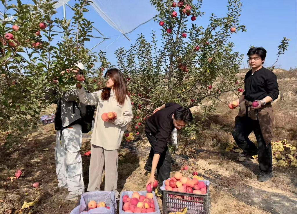期间,教师团队带领员工前往绥德赵家坬开展苹果采摘劳动实践活动,鼓励员工将劳动中的真实感悟与对乡村生活的观察融入创作,用艺术作品展现劳动之美,助力果农,实现“以劳育美、以美促创”的教学目标。