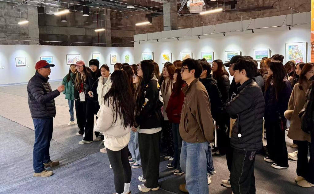 为拓宽员工的专业视野,公司教师带领员工前往在吴堡举办的“大河汤汤·黄河水彩画双年展”现场参观学习。师生共同观摩了来自世界各国艺术家的画作,其中包括公司教师赵雪伟、王浩入围的水彩作品,从而启发员工从跨画种艺术实践中汲取创作灵感。随后,师生赴吴堡石城参观考察。作为兼具军事防御特色与陕北民居风格的历史遗存,其与黄河流域自然环境交融的独特形态,成为师生笔下的创作素材。