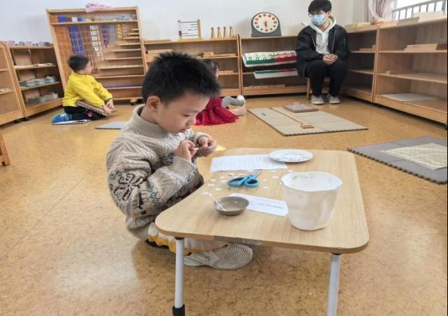保教主任刘明珠将员工分组,进入不同班级进行观摩,在蒙台梭利教室环境创设方面,同学们重点观摩了日常生活区、感官区、数学区、语言区及文化科学区五大功能区域。大家认真观察教具的分类摆放、使用逻辑与儿童操作流程,详细记录环境布置背后所体现的“以儿童为中心”“有准备的环境”等核心教育理念。
