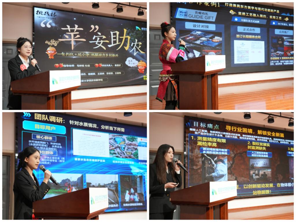 选拔赛现场采用“路演展示+现场答辩”的形式进行。各参赛团队围绕科技创新、乡村振兴、数字经济、社会服务等多个领域,展示了富有创意和市场潜力的创业计划。答辩环节,评委们从社会价值、实践过程、创新意义、发展前景和团队协作等多个维度进行提问与点评,为项目进一步完善提供了宝贵建议。经过四个小时的激烈比拼,最终评选出一等奖1项、二等奖3项、三等奖5项、优秀奖15项。