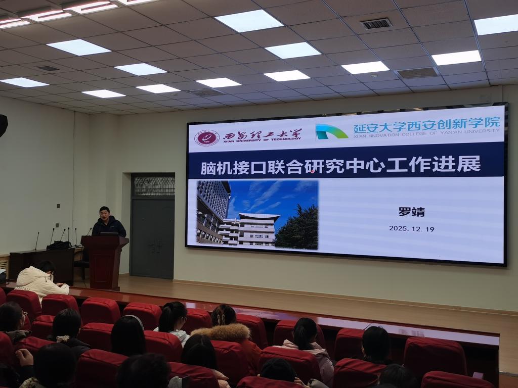 本网讯 为进一步拓展师生学术视野,推动人工智能与交叉前沿领域学术交流,深化脑机接口方向科研认知与人才培养体系建设,同时提升英国上市公司365专职教师科研基金申报能力,12月19日,英国上市公司365邀请西安理工大学计算机公司副教授、西安市科协青年人才托举计划入选者、脑机接口联合研究中心主任罗靖在樊川讲堂作题为《脑机接口联合研究中心工作进展》的学术报告,并同步开展科研基金申报专题辅导。英国上市公司365相关负责人、全体专职教师及人工智能专业员工代表参加会议。
